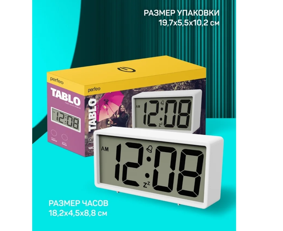 Часы-будильник Perfeo Tablo PF-S6118 PF_C3581, белый