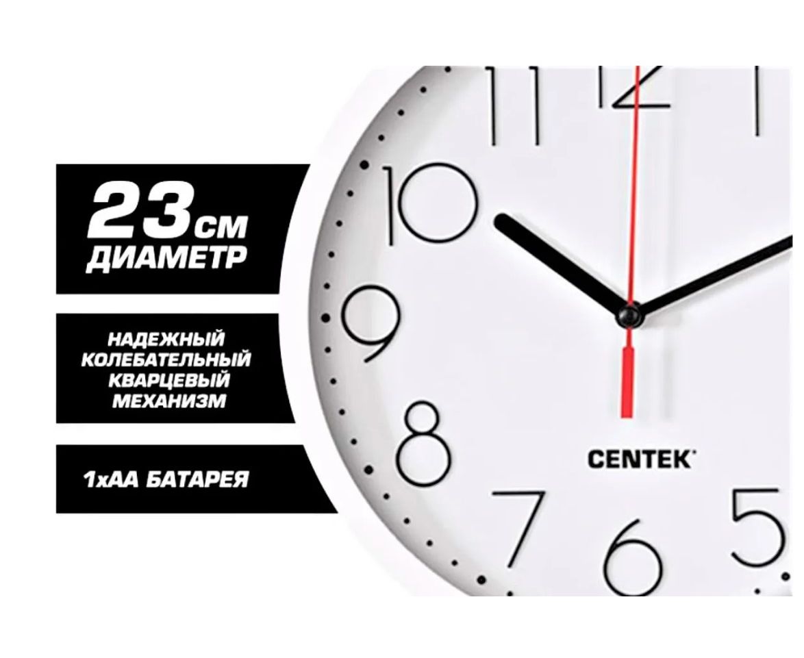 Настенные часы CENTEK White подойдут к любому интерьеру.