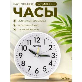 Часы-будильник Perfeo Quartz "PF-TC-030", круглые с подсветкой, белый, (Арт. PF_C3149)