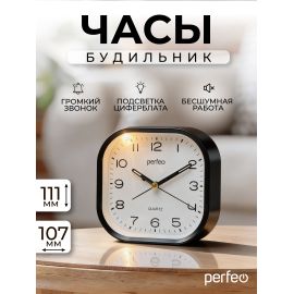 Часы-будильник Perfeo Quartz "PF-TC-030", круглые с подсветкой, черный, (Арт. PF_C3163)