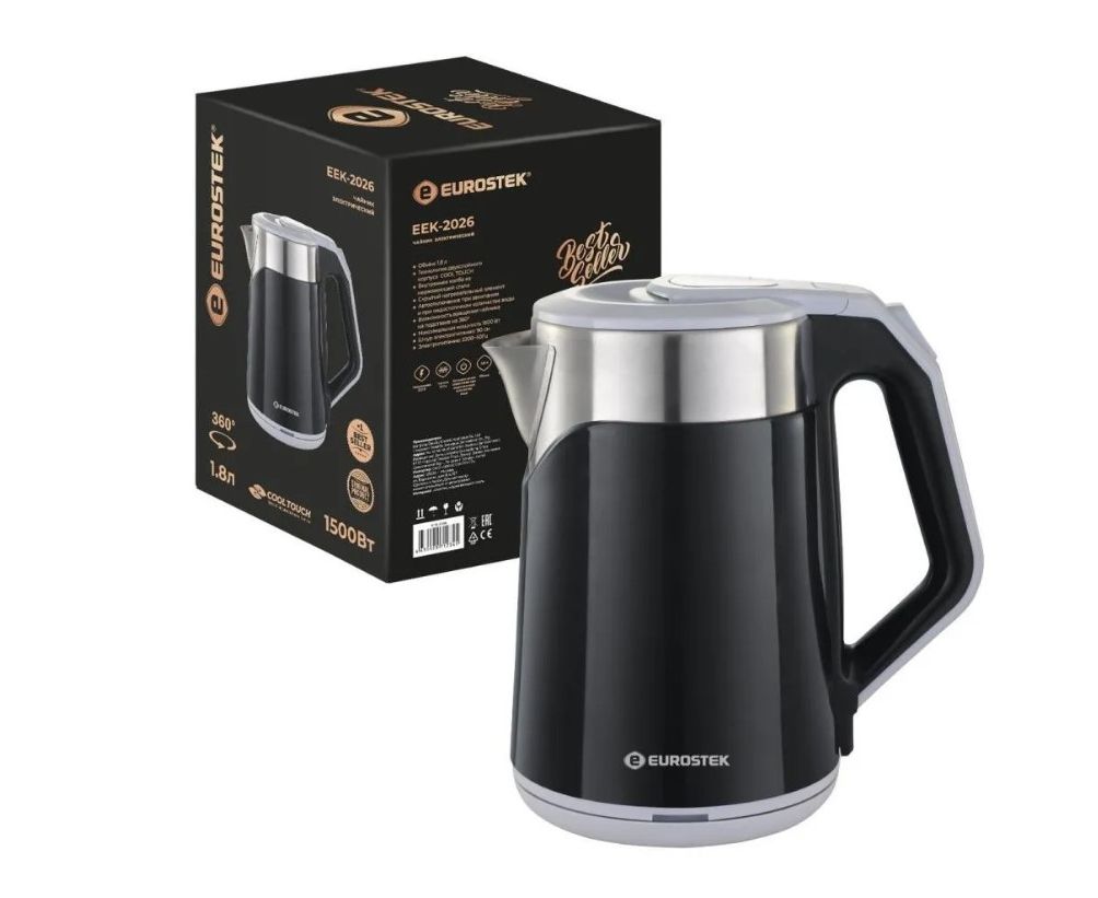 Чайник Eurostek EEK-2026 черный, 1500Вт, 1,8 литр