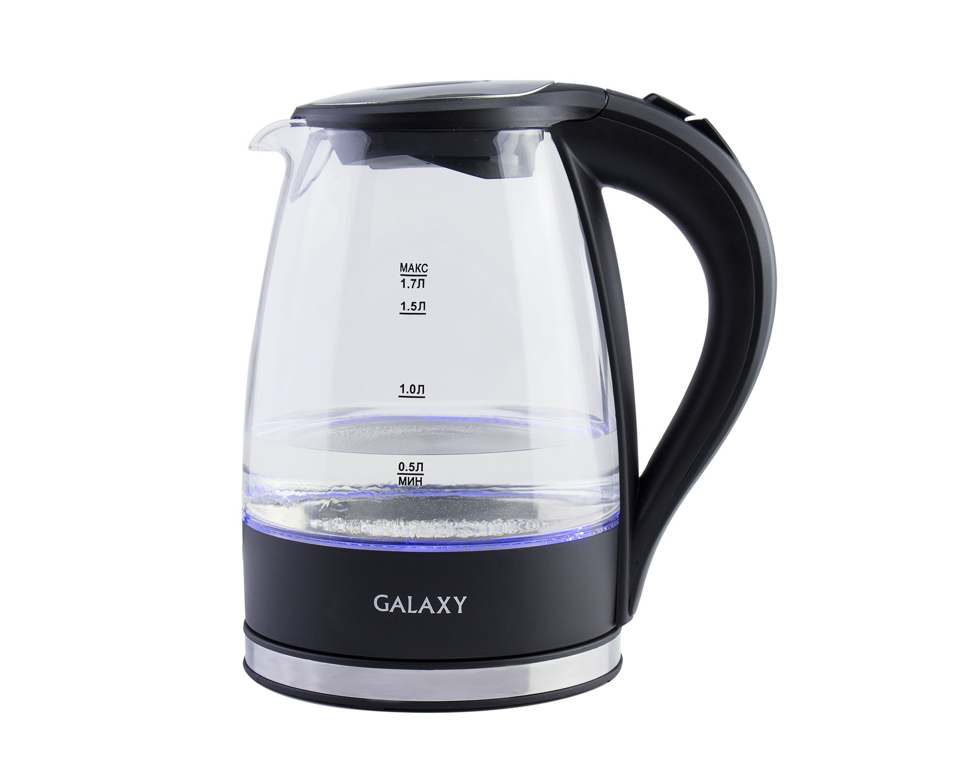 Чайник электрический GALAXY GL0552 имеет стильный дизайн, корпус из термостойкого стекла и светодиодную подсветку.