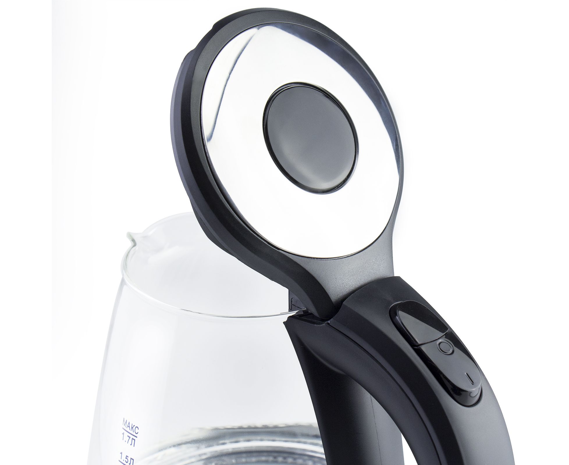 Крышка открывается нажатием кнопки не до конца, кажется, такая крышка не очень надежная, у предыдущего моего чайника крышка как раз и отломалась...