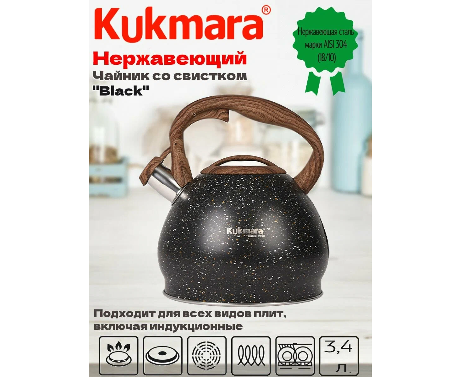 Чайник KUKMARA Черный мрамор Black ТМ kuk-07/3103555