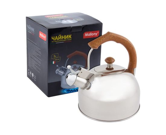 Чайник из нержавеющей стали со свистком Mallony DJB-3293 3 л, капсульное дно 900062 предназначен для кипячения воды.