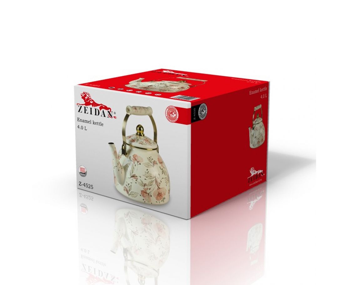 Эмалированный чайник ZEIDAN Flowers Z-4525 — это не только функциональный, но и стильный элемент вашей кухни. С объемом 4 литра он идеально подходит для приготовления чая или других горячих напитков для всей семьи или компании друзей. Чайник выполнен с комбинированной ручкой "под золото", что придает ему элегантный и роскошный вид, а внутреннее эмалированное покрытие обеспечивает защиту от коррозии и легкость в уходе. Наружное покрытие с красивым рисунком добавляет изюминку и делает этот чайник настоящим украшением вашей кухни. ZEIDAN Flowers также подходит для индукционных плит, что делает его универсальным выбором для любого типа кухонной техники. Подарочная упаковка делает его отличным вариантом для подарка на различные праздники или торжества.