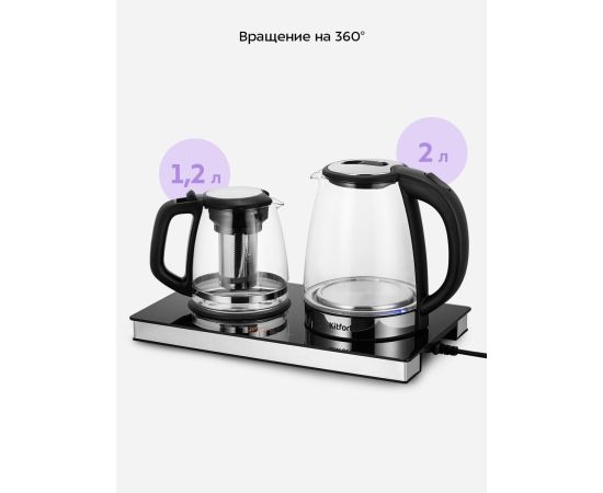 Чайный набор КТ-6737 представляет собой идеальное сочетание функциональности и удобства. Вскипятите воду, заварите чай или кофе в заварочном чайнике, а встроенная платформа с подогревом поможет сохранить готовый напиток теплым.