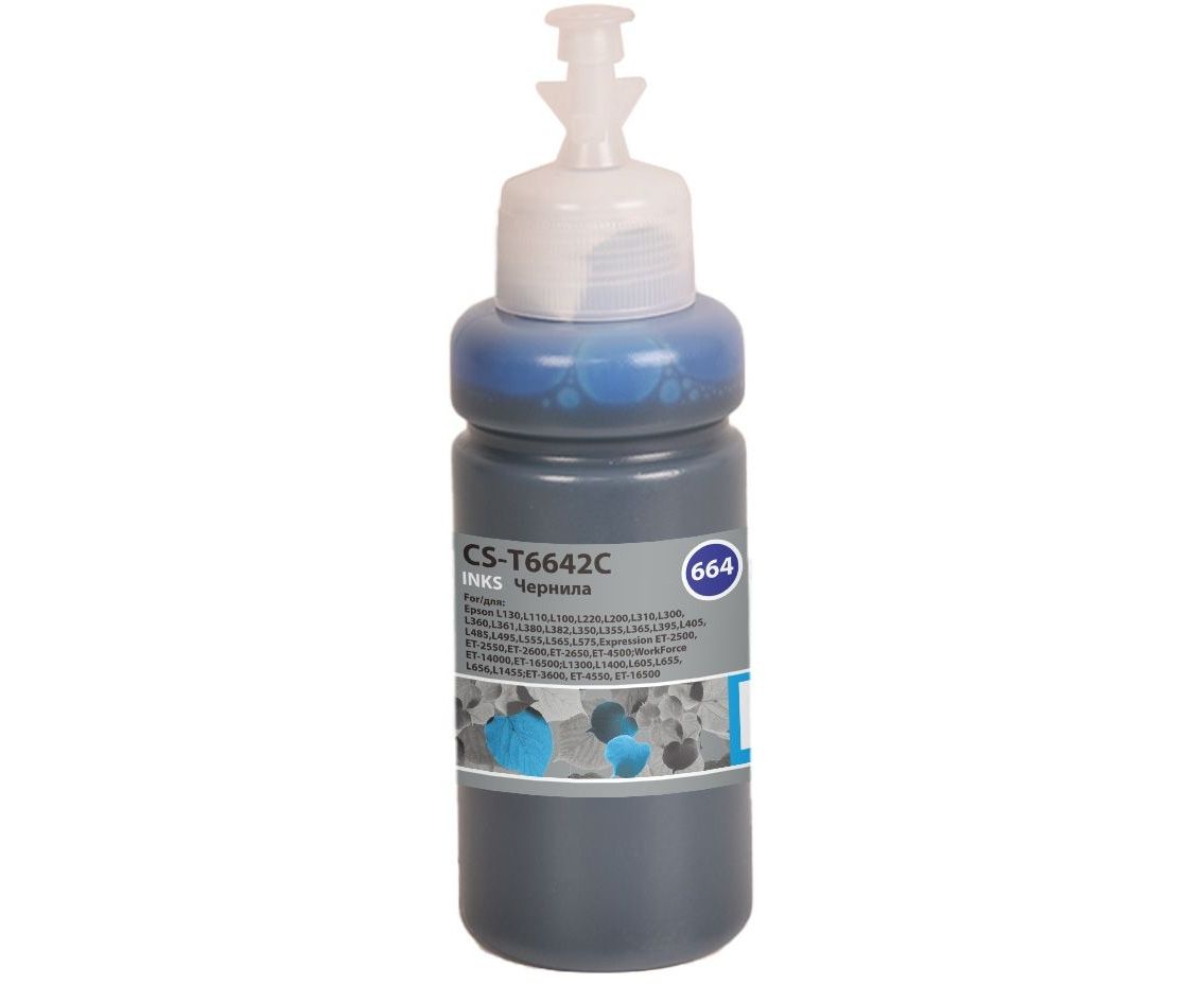 Чернила Cactus CS-T6642C 664 голубой 70мл для Epson L130,L110,L100,L220,L200,L310,L300,L360,L361,L380,L382,L350,L355,L365,L395,L405,L485,L495,L555