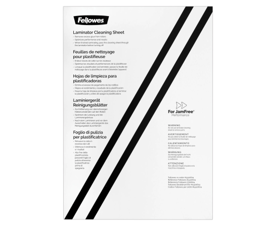 Чистящий лист FELLOWES адсорбирует остатки клея, пыли и грязи с поверхности валов.