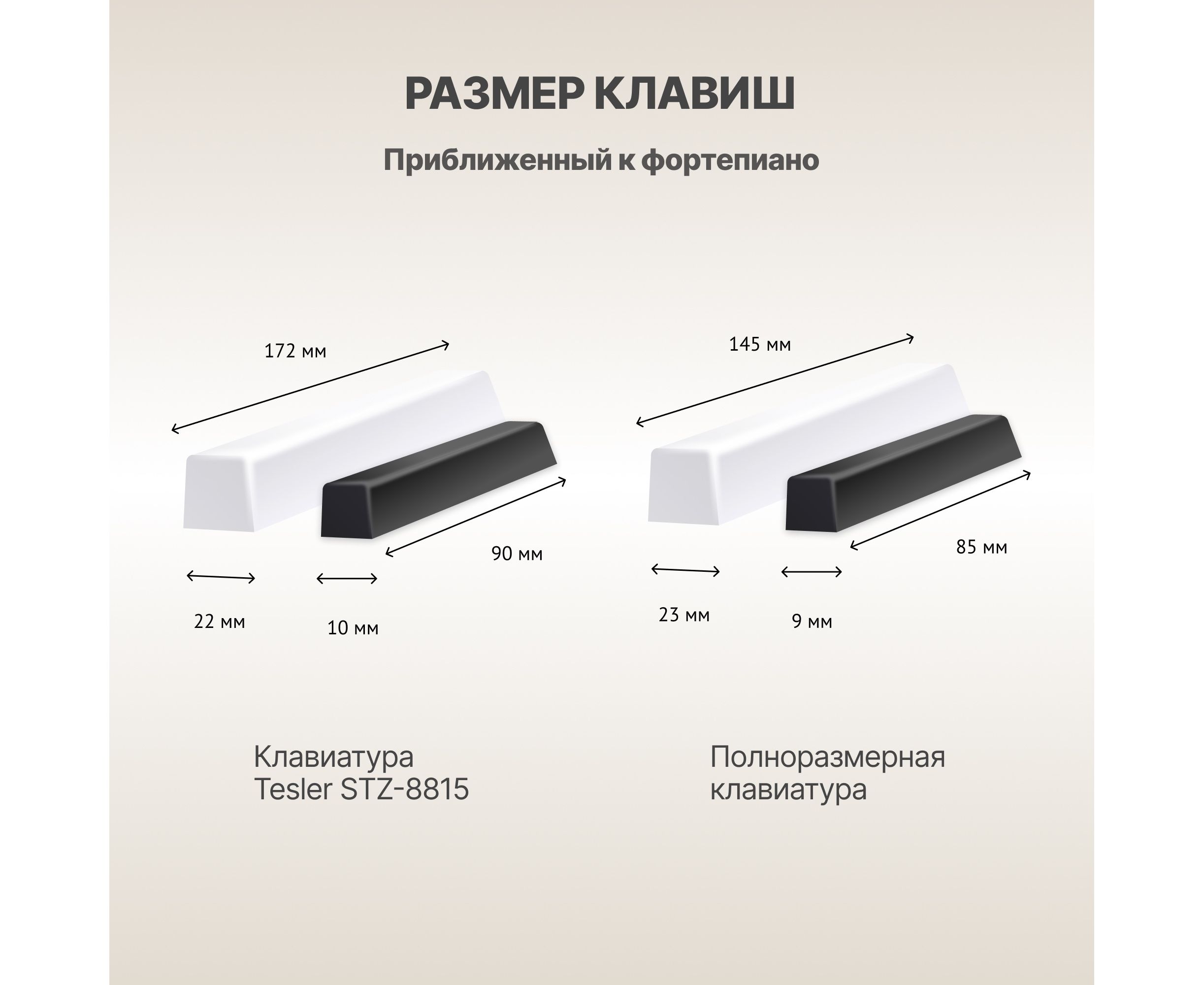 Размер чёрных клавиш: