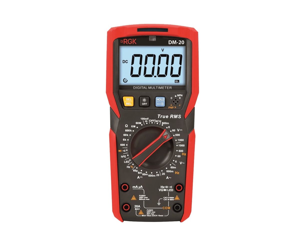 Цифровой мультиметр RGK DM-20 - это надежный и безопасный прибор для измерения целого ряда параметров электросетей и оборудования, прозвонки цепей, тестирования различных компонентов электроприборов.