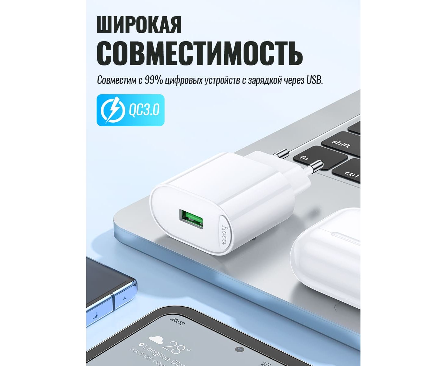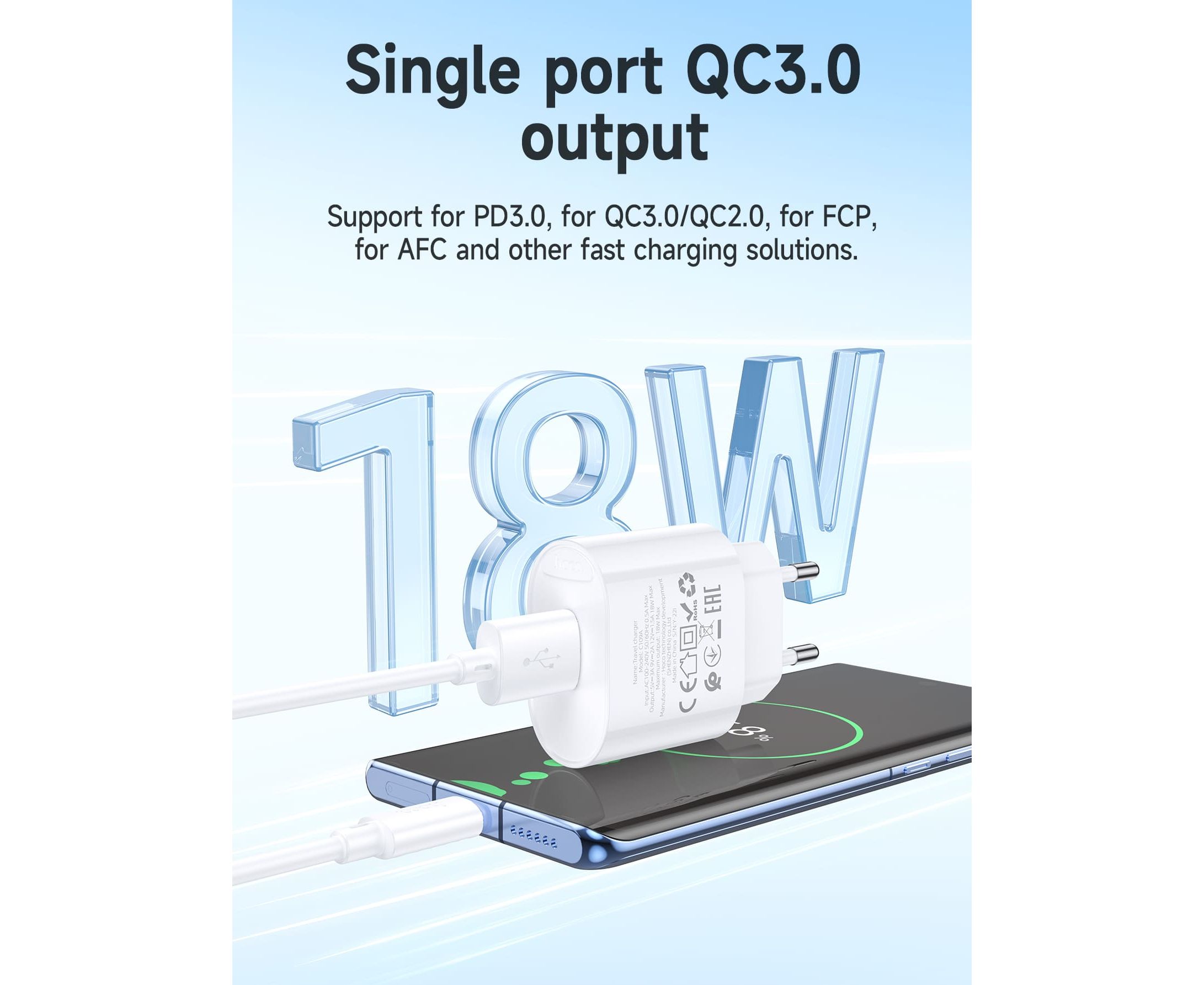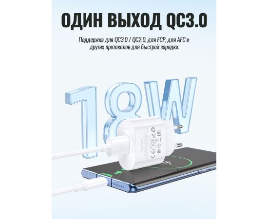 СЗУ HOCO C109A Fighter single port QC3.0 charger(EU) (белый)