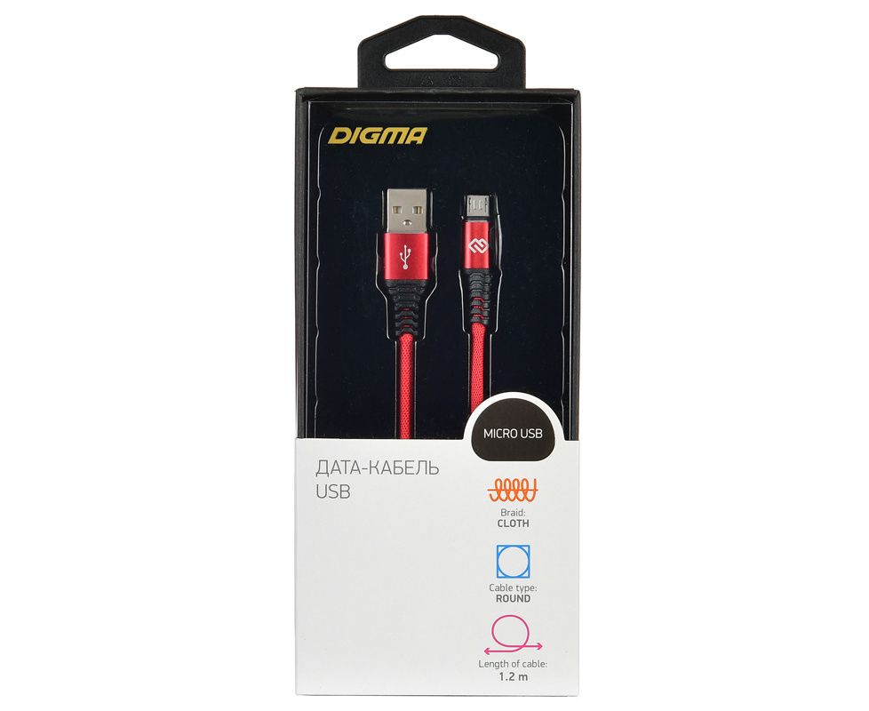 Дата-кабель Digma micro 1.2м красный