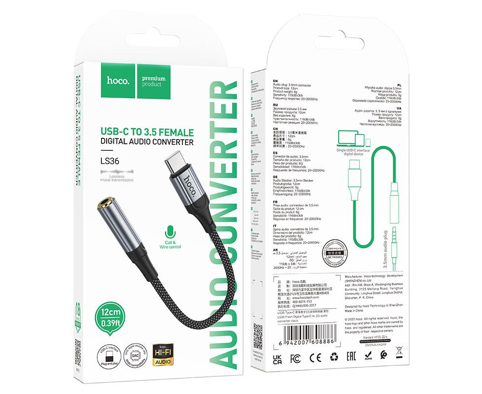 LS36 Fresh, аудио конвертер Type-C штекер на 3.5мм гнездо, чип декодирования DAC, поддержка звонков и проводного управления