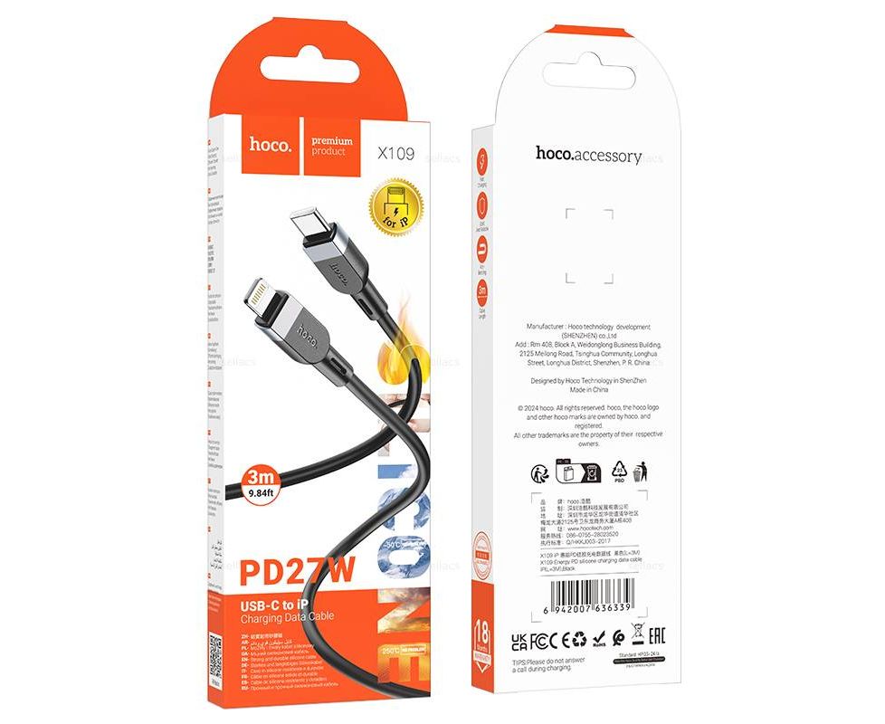 Дата-кабель HOCO X109 Energy PD silicone charging data cable IP (L-3M) Black