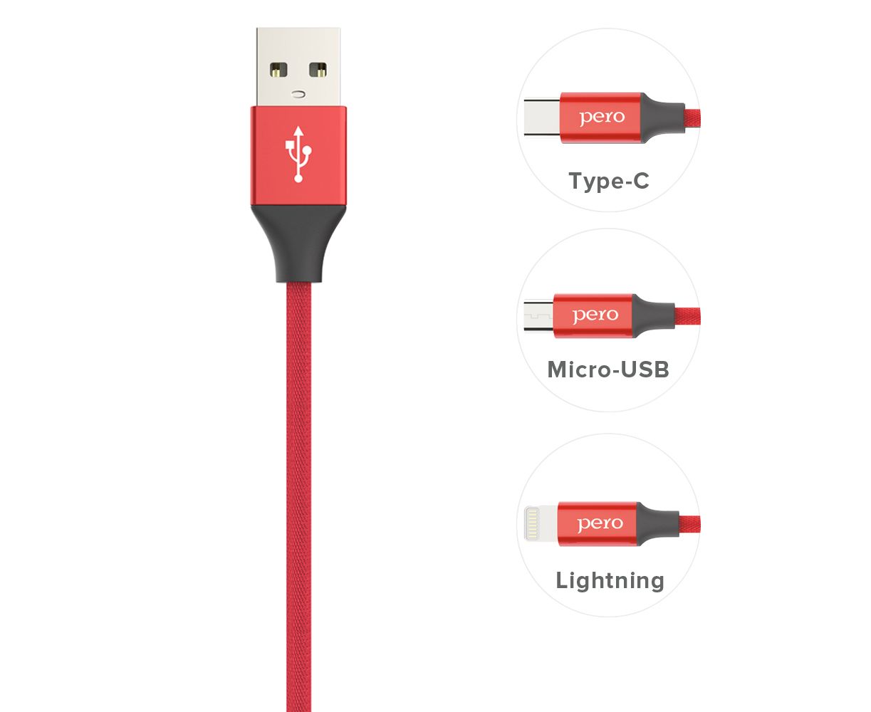 Дата-кабель PERO DC-02 micro-USB, 2А, 1м, красный