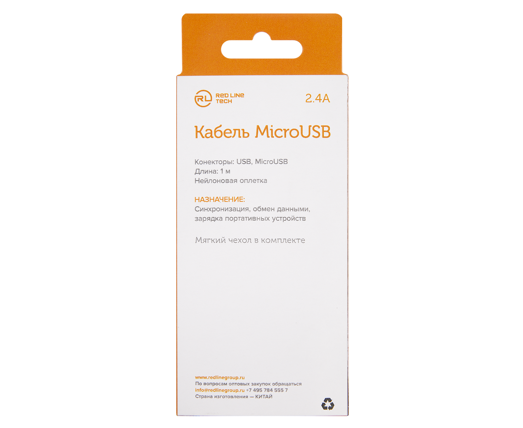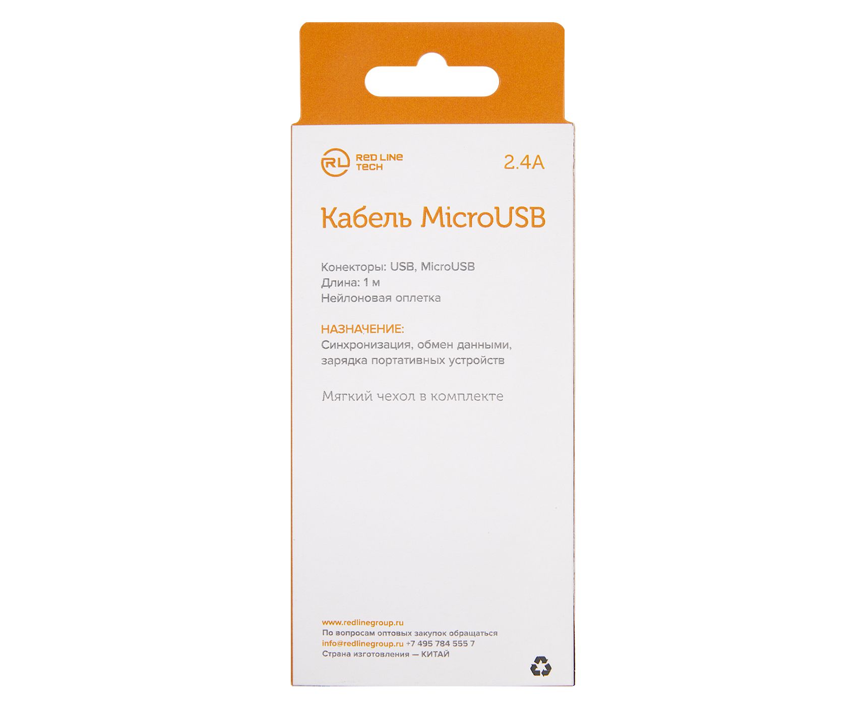 Дата-кабель Red Line USB - micro USB, 2.4А, нейлоновая оплетка, белый (мягкий футляр)