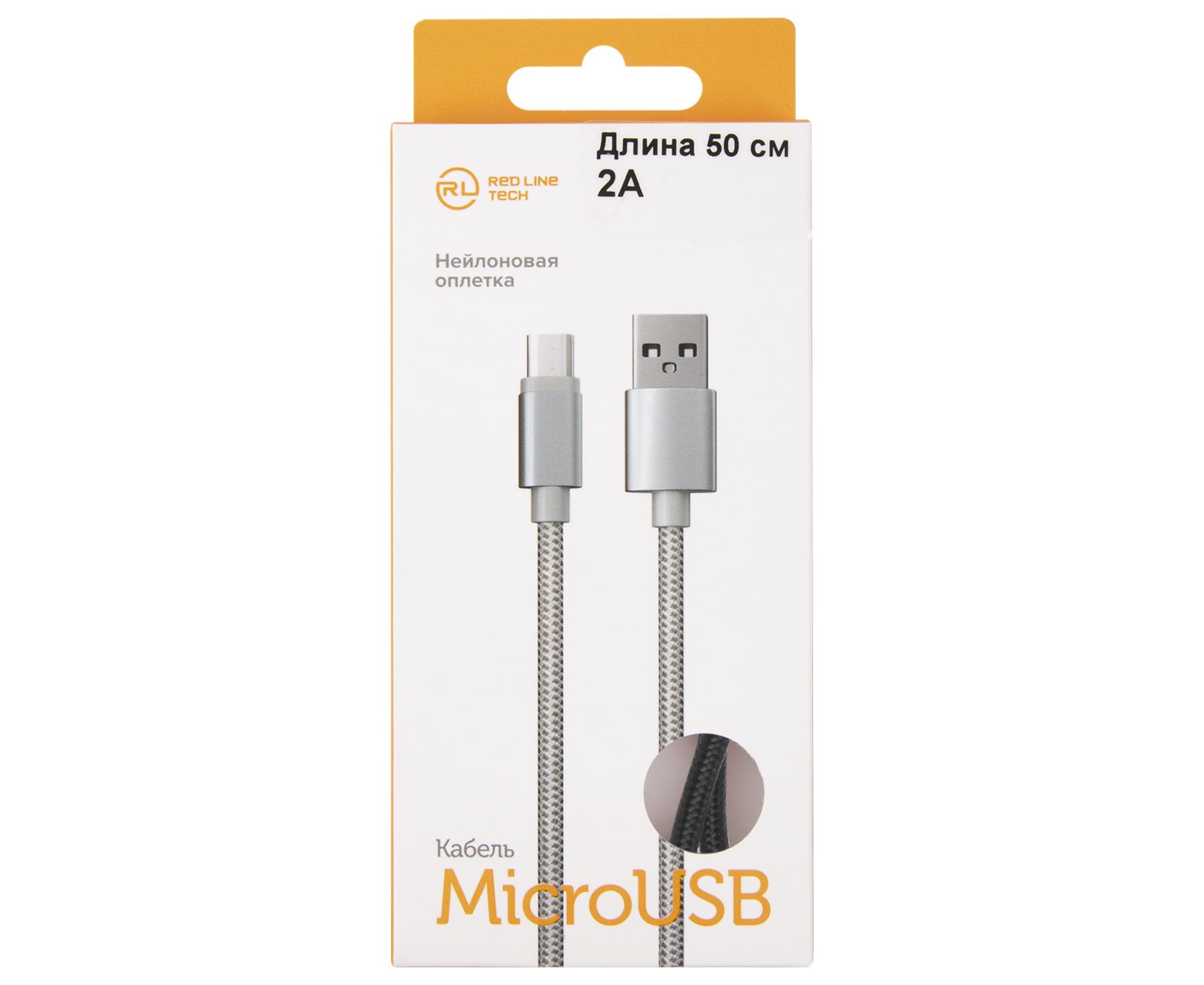 Дата-кабель Red Line USB - micro USB (50 см), 2А, нейлоновая оплетка, черный