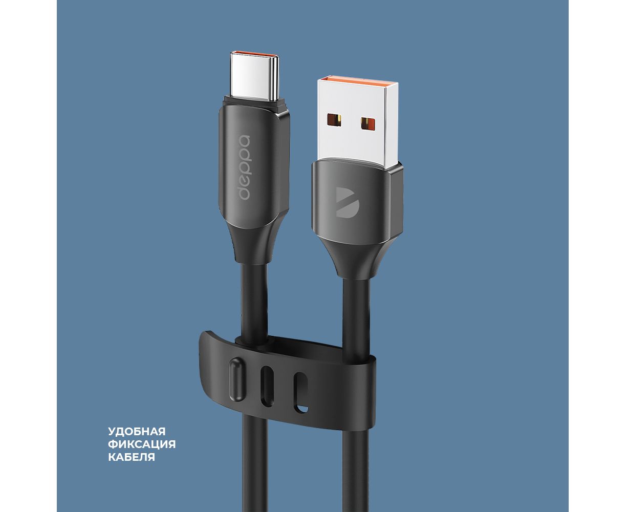 Дата-кабель Silk USB - USB-C, 66Вт, 6А, 1,2м, черный, Deppa