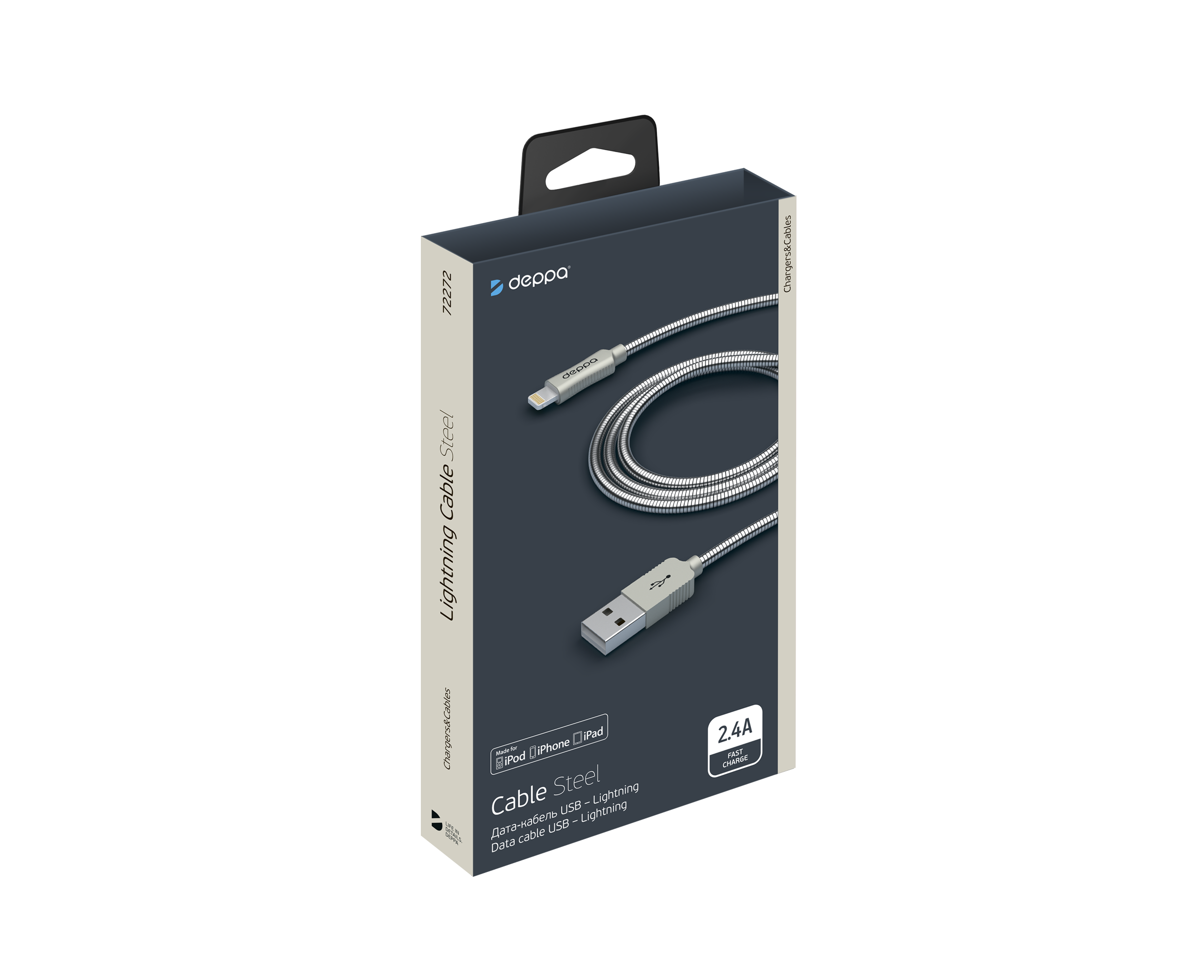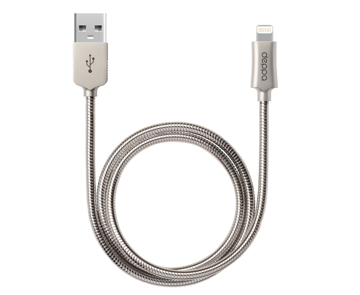 Дата-кабель Steel USB - Lightning, алюминий, MFI, 1.2м, стальной, Deppa, 72272