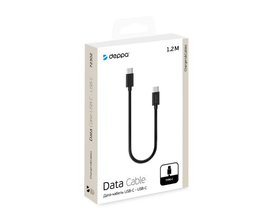 Дата-кабель USB-C - USB-C, 3A, 1.2м, черный, Deppa, 72302