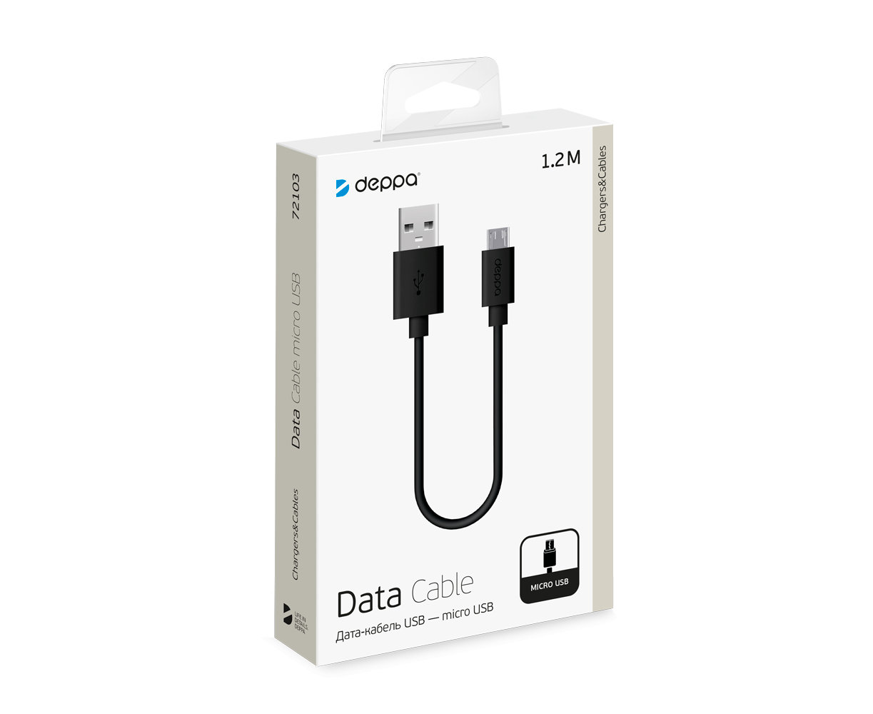 Дата-кабель USB-microUSB, 1.2м, черный Deppa