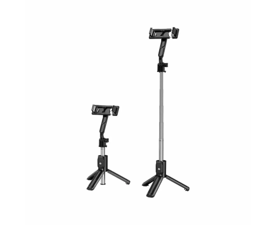 Компактный размер и лёгкий вес позволяют брать его с собой повсюду — монопод легко помещается в сумку или рюкзак. В сложенном виде устройство занимает минимум места, а в разложенном достигает высоты 62 см, обеспечивая удобную съёмку под разными углами. Надёжный зажим подходит для смартфонов с диагональю 4.5–7 дюймов (ширина крепления — от 60 до 90 мм).