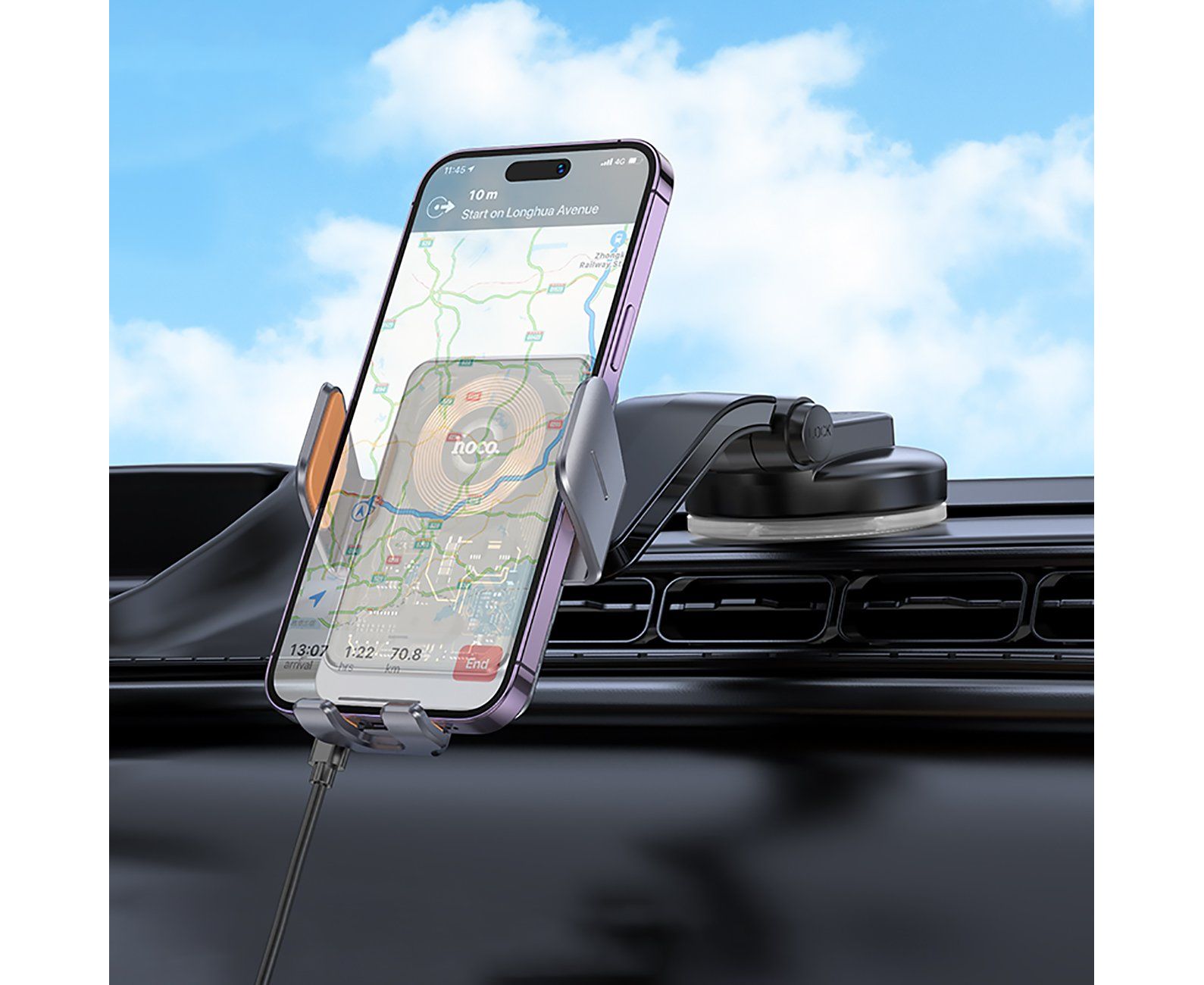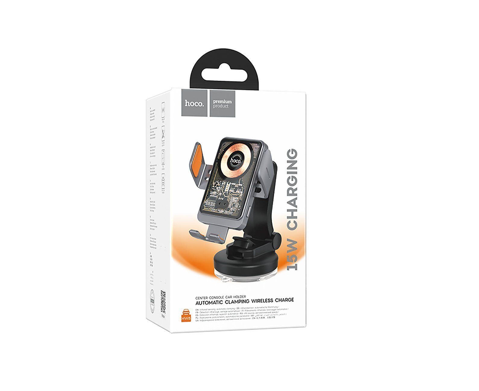 Держатель автомобильный с беспроводной зарядкой Hoco гравитационный+беспроводная зарядка HW8(225033)