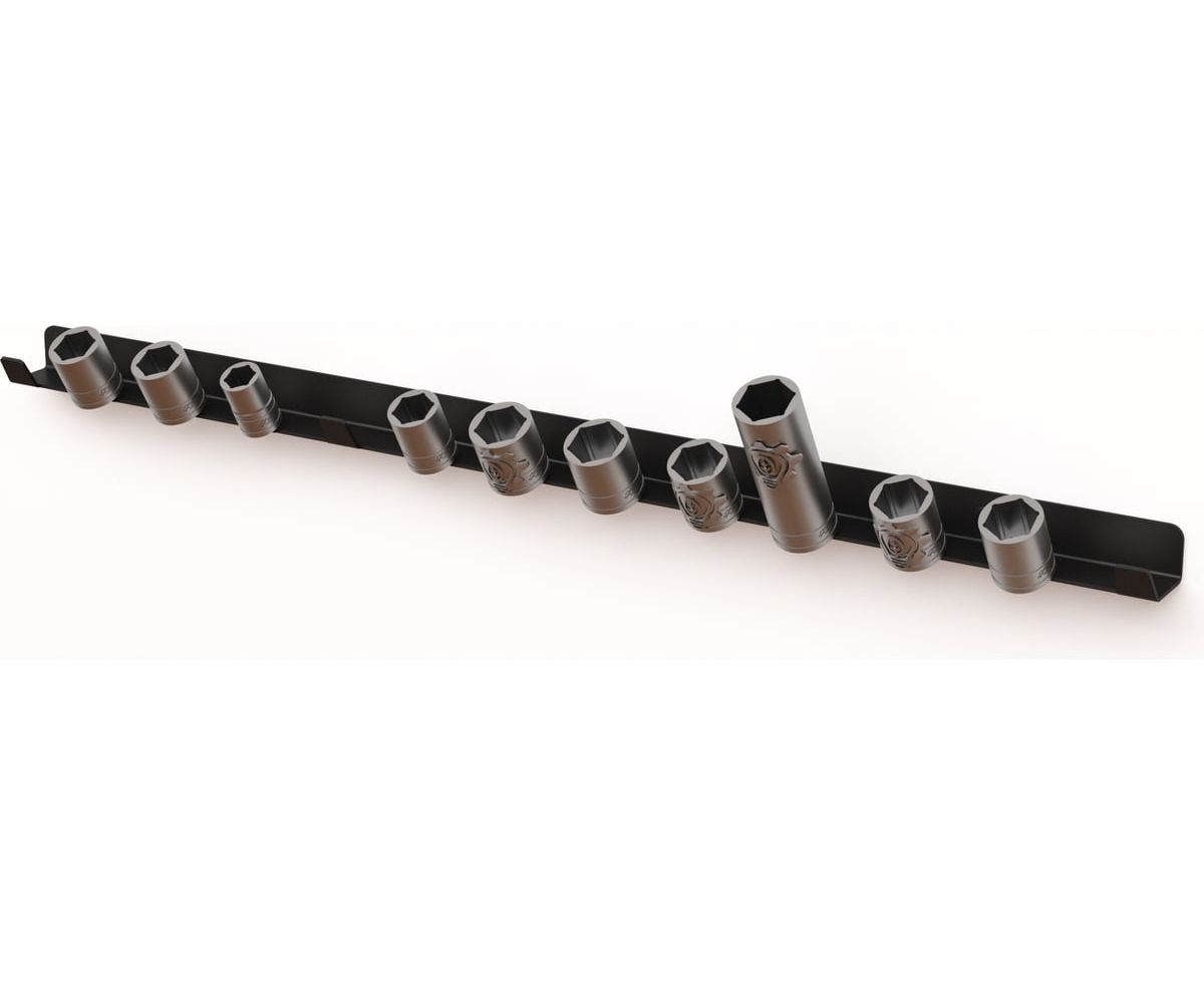 Кронштейн позволяет легко и удобно расположить головки 3/8 дюйма (под квадрат 9,53 мм) и станет идеальным местом их хранения в гараже, на балконе, складе и мастерской, кладовке и в других местах.