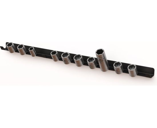 Обеспечивает порядок на рабочем месте и быстрый доступ к инструментам и аксессуарам, которые легко можно достать для работы и по окончанию - вернуть на свое постоянное место. Держатель имеет продуманную конструкцию, предусматривающую место для хранения 17 головок 3/8 дюйма (под квадрат 9,53 мм).