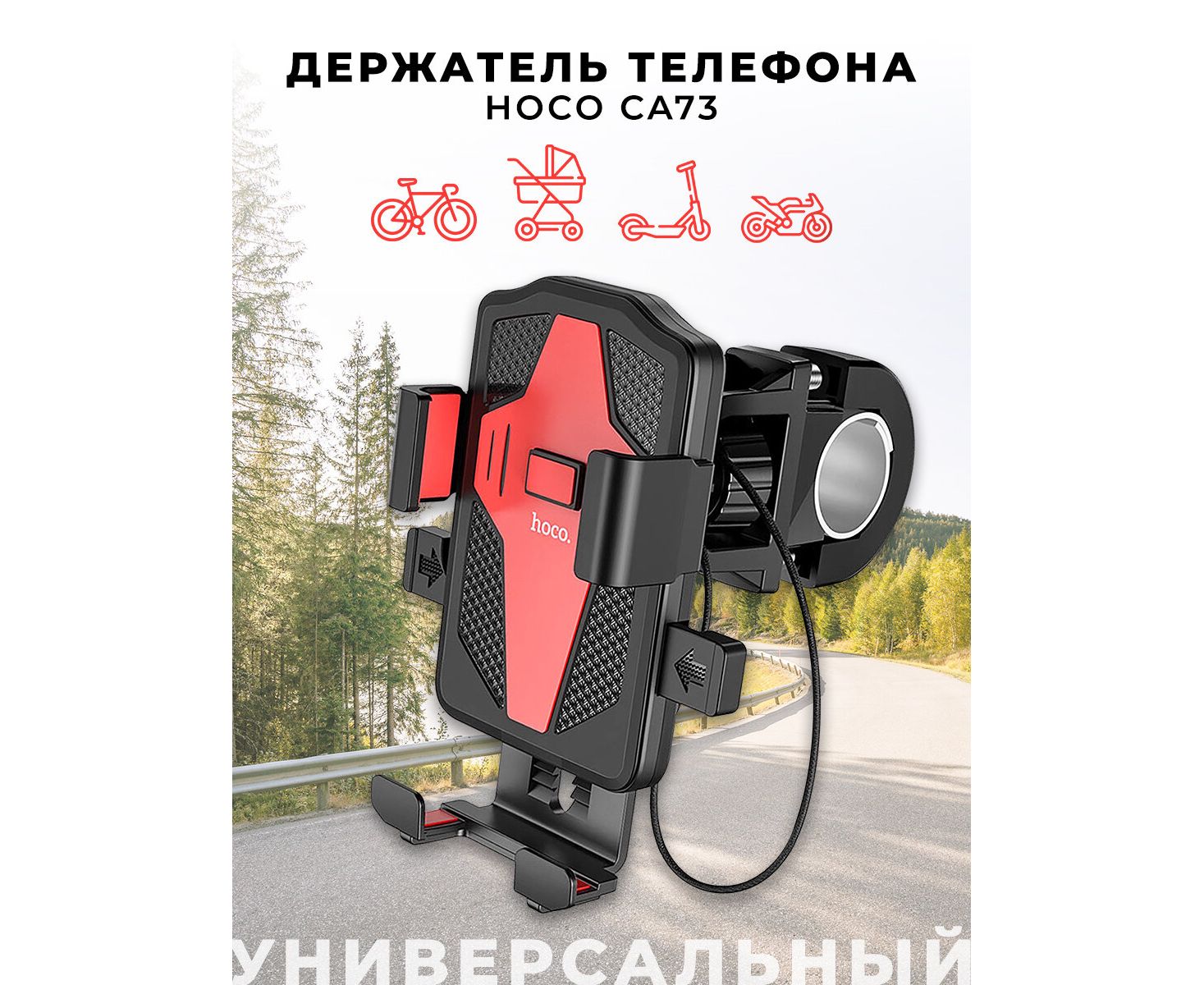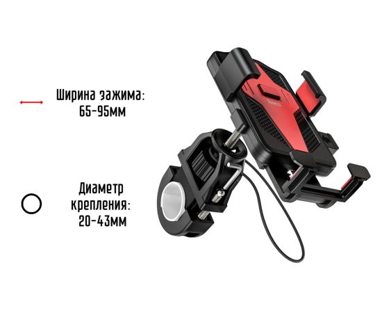 Держатель на руль велосипеда HOCO CA73 Flying one-touch bicycle and motorcycle universal, black&red