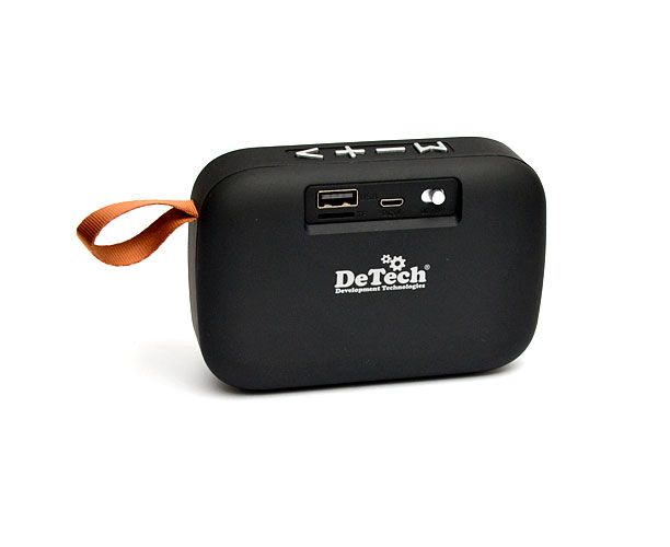 Колонка DeTech DT-G2C умеет проигрывать музыку через Bluetooth, с USB-флешки, карты microSD и принимать радиоволны в FM-диапазоне.