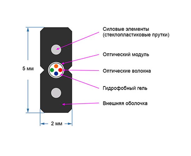 Detech FTTH внутренний 1F*G657A1, 2*0.5мм FPR+LSZH оболочка, OD2*5мм, 1000м