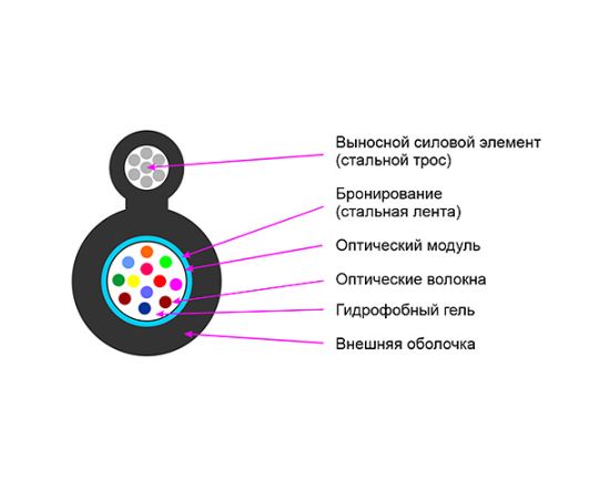 Подвесной оптический кабель, предназначен для наружной прокладки между опорами. Применяется в FTTx сетях, а также для прокладки в сетях до рабочих мест или до квартир и офисов абонентов. Кабель содержит 8 оптических волокон, соответствующие стандарту G.652D. Для защиты трубки с волокнами выполнено бронирование стальной лентой. В качестве силового элемента для подвеса используется стальной трос из 7 жил диам. 0,4мм. Внешняя оболочка изготавливается из MDPE (полиэтилен средней плотности). Кабель смотан в бухты по 1000 м на деревянной катушке.