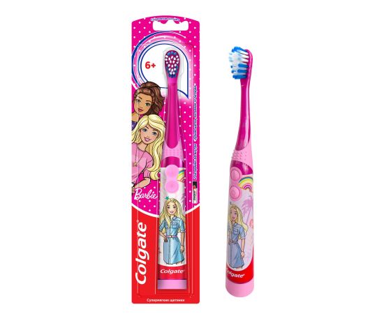 Детская зубная щетка "Colgate Супермягкие щетинки", питаемая от батарей, супермягкая - это инновационная зубная щетка, которая сочетает в себе уникальную технологию Sonic вибрации с супермягкими щетинками для бережного удаления налета.