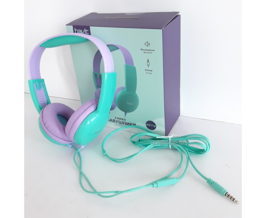 Детские наушники гарнитура HAVIT HV-H211d Фиолетово-зелёная