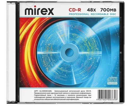 Диск CD-R Mirex 700 Mb, 48х (UL120051A8S), Slim Case (1), (1/200)