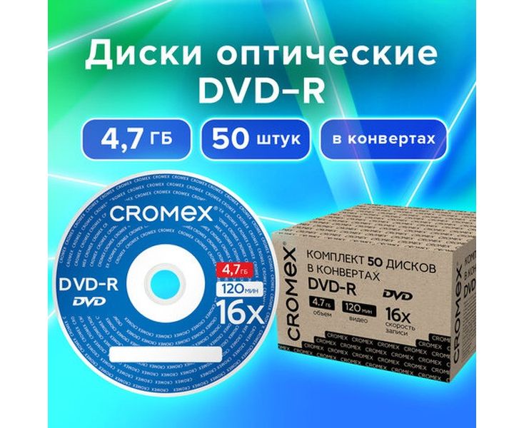 Диск DVD-R CROMEX 513798 4,7Gb, 16x, в конверте 50шт