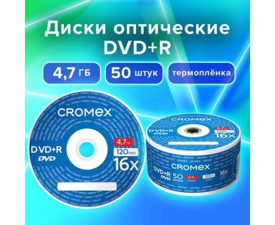Диск DVD+R CROMEX 513774, 4,7Gb, 16x, Bulk (термоусадка без шпиля) 50шт