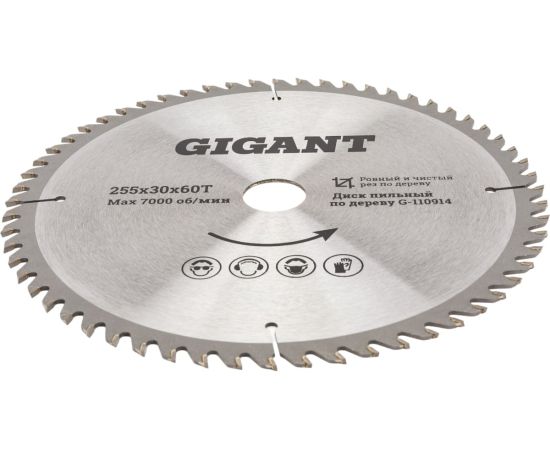 Диск пильный чистый рез по дереву Gigant G-110914 255x30x60Т