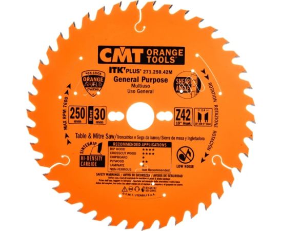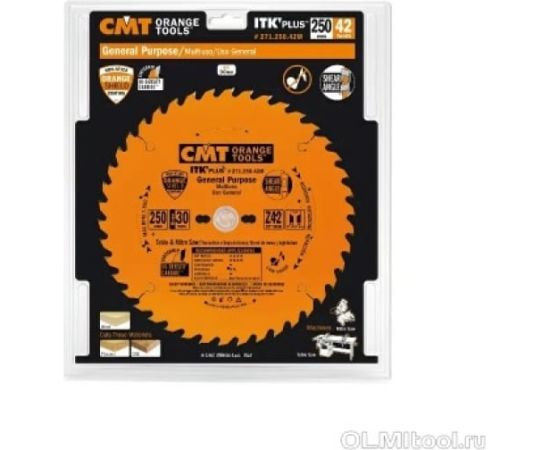 Диск пильный по дереву CMT 250x30x2,4/1,6 271.250.42M Z42 a-18град ATB+S тонкий пропил, универсально