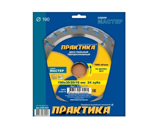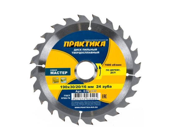 Диск пильный по дереву, ДСП Практика 190 х 30/20 мм (030-405) 24 зуба
