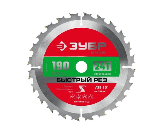 Диск пильный по дер. Зубр 36910-190-20-24_z01 d-190мм d(посад.)-20мм (циркулярные пилы)