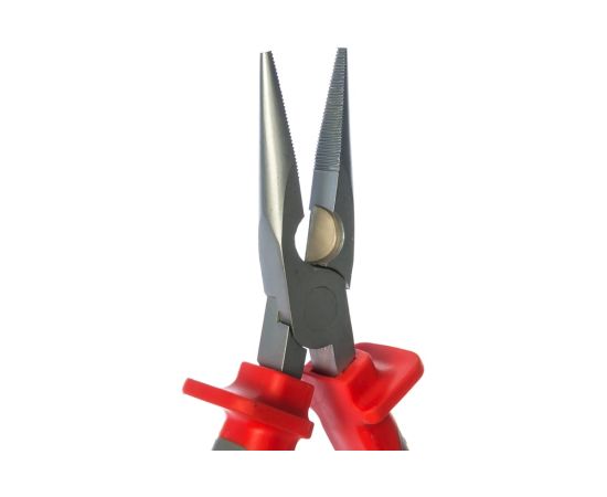 Изолированные длинногубцы безопасны при работе с оборудованием под напряжением до 1000 В. Рабочая часть изготовлена из инструментальной стали и покрыта никелем для повышения коррозионной стойкости, что гарантирует большой срок службы. Рукоятки из многокомпонентного материала не скользят в ладони. Упоры под пальцы исключают контакт руки с объектом.