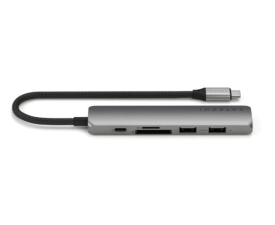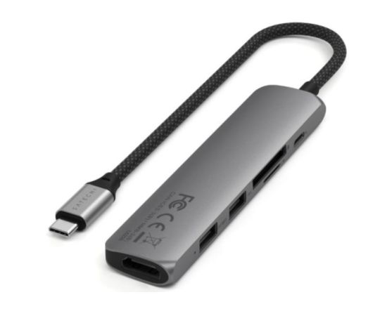 Док-станция Satechi 6-in-1 USB-C Slim Multiport Adapter (ST-P6SM) Type-C, HDMI, 2x Type-A, SD, microSD, до 75 Вт, Серый