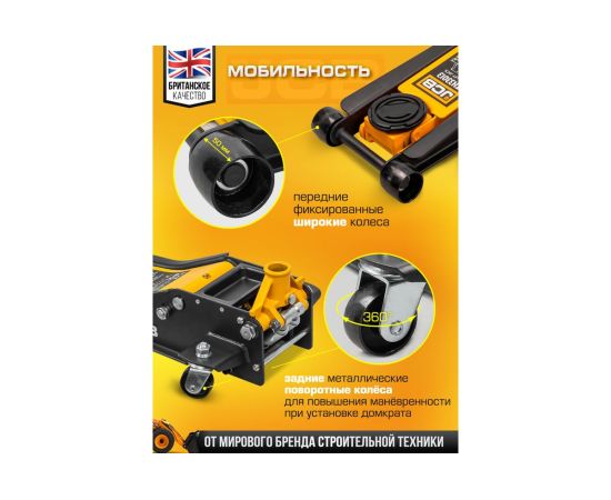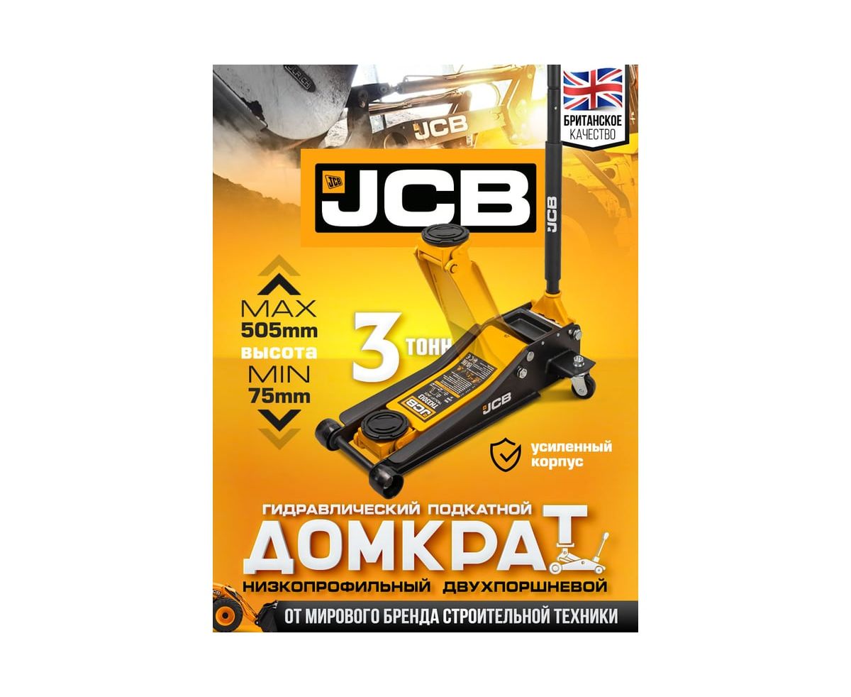 Домкрат подкатной автомобильный от бренда JCB является высококачественным оборудованием, которое предназначено для подъема автомобилей в автосервисах, шиномонтажных центрах по ремонту и техническому обслуживанию или в гараже. Устойчивый стальной корпус обеспечивает прочность и износостойкость. Подходит для автомобилей с низким клиренсом.