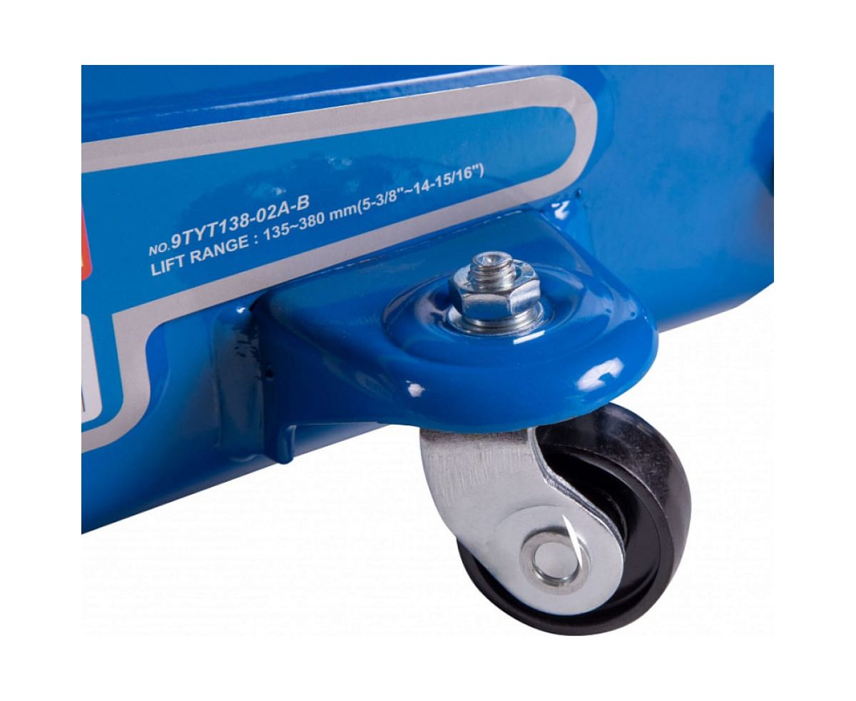 Подкатной домкрат KING TONY 2 т, кейс 9TYT138-02A-BA предназначен для подъема автомобиля при выполнении работ по ремонту ходовой части, трансмиссии, шиномонтажных и других видов работ. Компактный и удобный, не занимает много места в багажнике. Минимальная высота 135 мм.