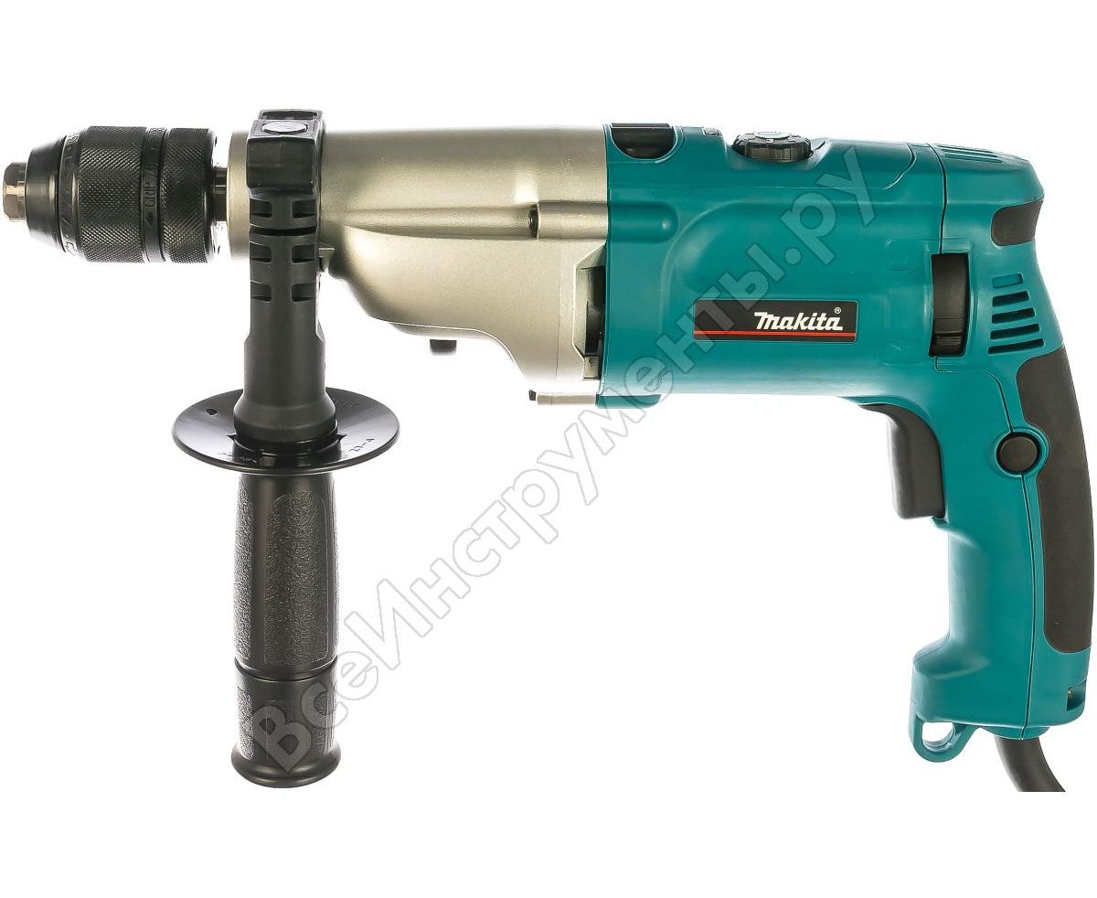 Двухскоростная ударная дрель Makita HP 2071 имеет два режима работы: сверление и ударное сверление.