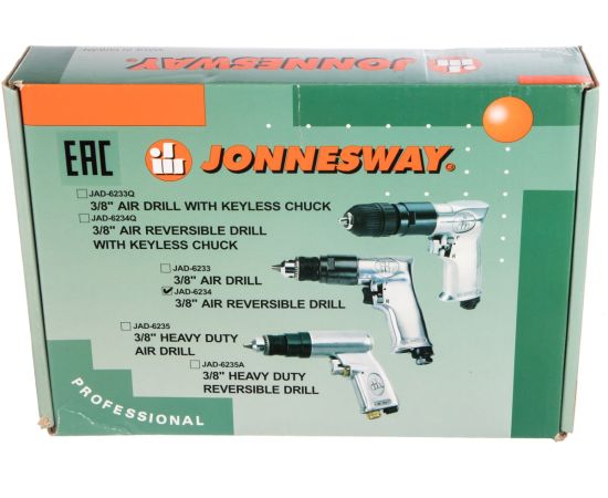 Дрель пневматическая Jonnesway JAD-6234 (47105) с реверсом 2500 об/мин., патрон 1-10 мм