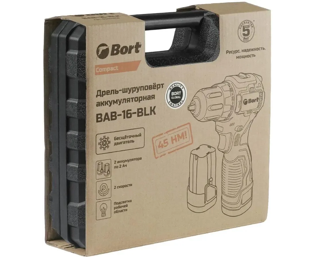 Дрель-шуруповерт аккумуляторная Bort BAB-16-BLK (93414868) с АКБ и ЗУ